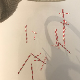 When thinking about how I could develop these forms into 3D I thought back to my time in Japan for inspiration. At the time I was there the Hinamatsumori festival has just passed. This is a day celebrating girls it is celebrated on 3 March of each year, platforms covered with a red carpet-material are used to display a set of ornamental dolls representing the Emperor, Empress, attendants, and musicians in traditional court dress of the Heian period.Ā There are also mobiles with hanging plush dolls in the forms of animals can be seen almost everywhere you go. I decided to take inspiration from the hanging dolls can create a mobile inspired sculpture using the straws as the charms.